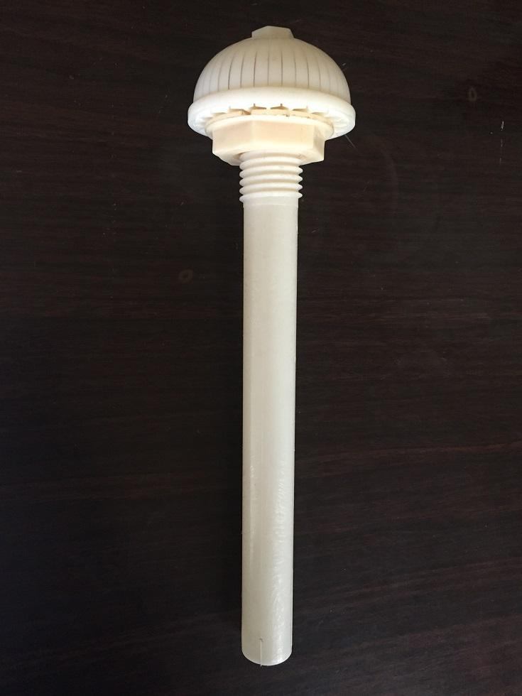 長柄濾頭應用于濾池汽水反沖洗配水系統;短柄濾頭應用于濾池單水反沖洗和重力式、壓力式濾罐及離子交換濾床等配水過濾系統。濾頭既可適用于生活飲用水處理,也可適用于飲料、印染、游泳池等各種工業用水處,同樣可以應用于工業廢水,生活污水的處理工程中。長柄濾頭應用于濾池單水反沖洗和重力式、壓力式濾罐及離子交換濾床等配水過濾系統。本濾頭采用進口ABS工程塑料制造,強度高,不易破碎。在濾頭結構中強化螺紋增設橡膠墊圈,聯接牢固,*不脫落。濾頭帽底座設計增加底縫,使與濾板間無死水區,不積泥。